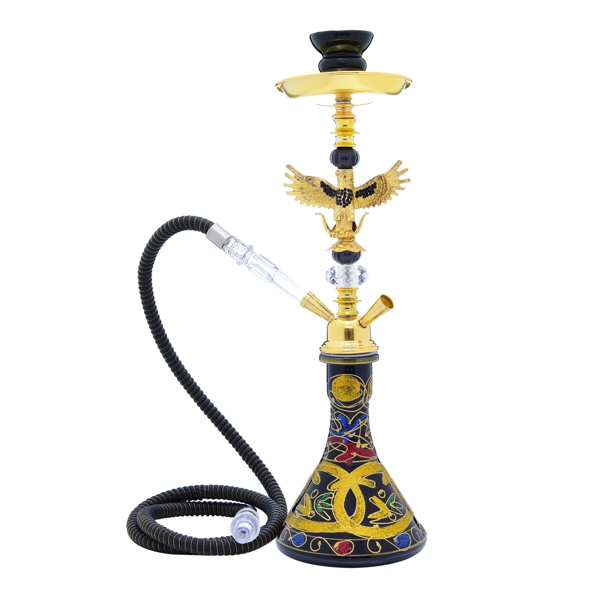 The premium heat-resistant glass bowl that comes with the Egyptian Hookah set is fashioned specifically to fit the top chamber and maximize heat distribution. Compared to conventional clay bowls, glass bowls enable more accurate tobacco heating monitoring.