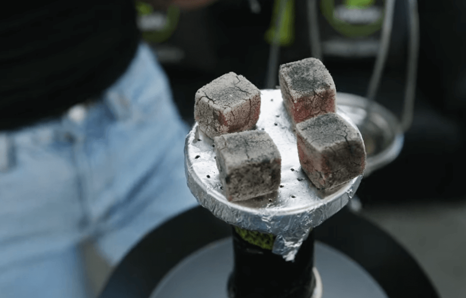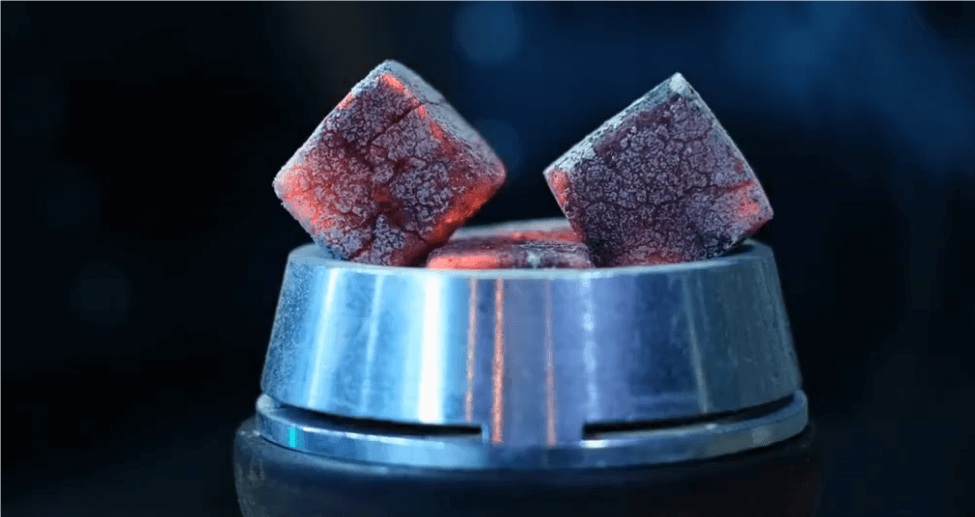 Dann können Sie entweder die Oberseite des Schüssel mit Alufolie die kleine Löcher für die Luftzirkulation hat, oder Sie können ein modernes Wärmemanagementgerät (HMD) verwenden, wie das Kaloud Lotusdas ist ein Metallgitter oder eine Umhüllung. Diese neuen Ideen, die sich in den letzten 10 Jahren durchgesetzt haben, ermöglichen ein konstanteres Wärmemanagement als herkömmliche Folien. Dies verringert die Gefahr von Verbrennungen und verlängert die Sitzungsdauer. Anschließend werden auf diese Konfiguration angezündete Holzkohleblöcke gelegt, die in der Regel aus natürlichen Kokosnussschalen oder Bambus bestehen und bei 400-600°F (200-315°C) sauber brennen.