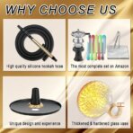 En Juego de narguile ruso utiliza un diseño de fondo de diamante de cristal personalizado para mejorar la estabilidad. La conexión superior de la manguera se puede girar 360° para evitar que se retuerza. Viene con una sólida cubierta antiviento para un flujo de aire constante.