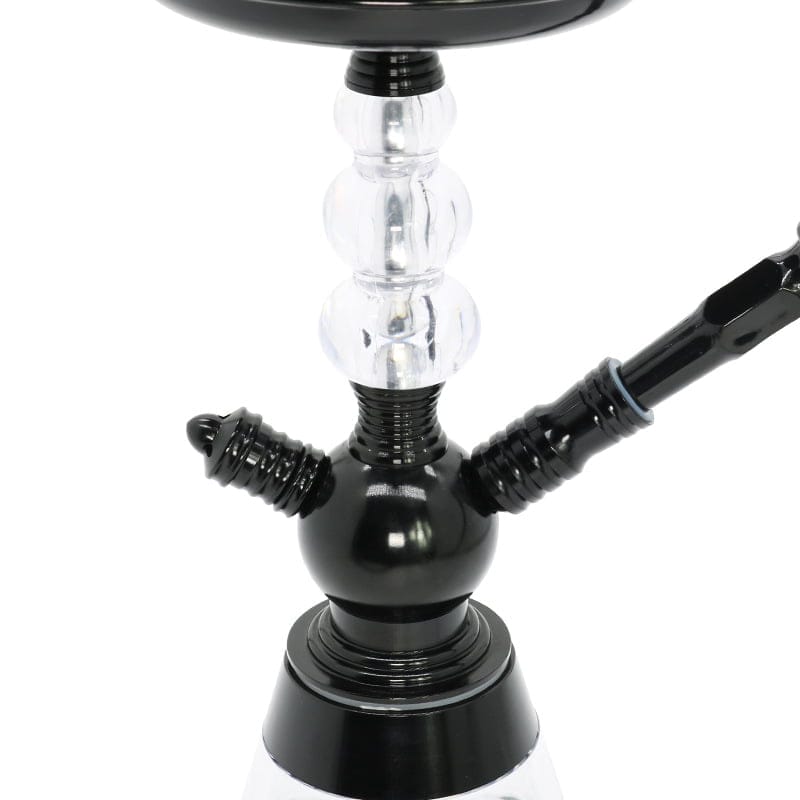 El kit incluye una manguera de silicona duradera pero flexible, una cazoleta de aleación de aluminio, un cenicero de carbón con acabado metálico y una base de narguile de cristal negro.