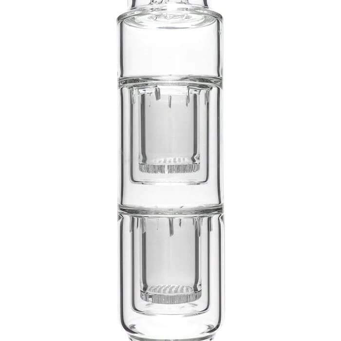 Hey guys, check out our newly designed Straight Tube Glass Bong. Isn’t it awesome? It’s made from high-quality clear glass so you can totally see the smoke passing through the multiple filtration chambers as you take a hit. It has two stacked percolators rising from the base, each with a matrix percolator inside that creates tons of tiny bubbles to cool down the smoke. Above the percs is a straight tube with an ice catcher so you can add ice for an even cooler smoking sesh.