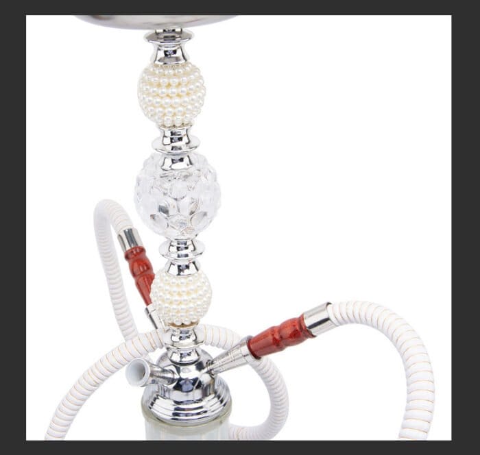 Este é o Conjunto de narguilé bonito. Inclui um cachimbo de água, 3 mangueiras e 2 bases de vidro. Este conjunto de narguilé tem 53 cm de altura e é fornecido com uma tigela incorporada e uma mangueira amovível. Este conjunto Conjunto de narguilé bonito tem uma base de vidro que facilita a limpeza e a manutenção. A taça ou a parte superior deste conjunto de narguilé pode ser facilmente limpa, bastando passar por água corrente, mas também pode ser lavada na máquina de lavar louça se quiser eliminar todos os resíduos do fumo.